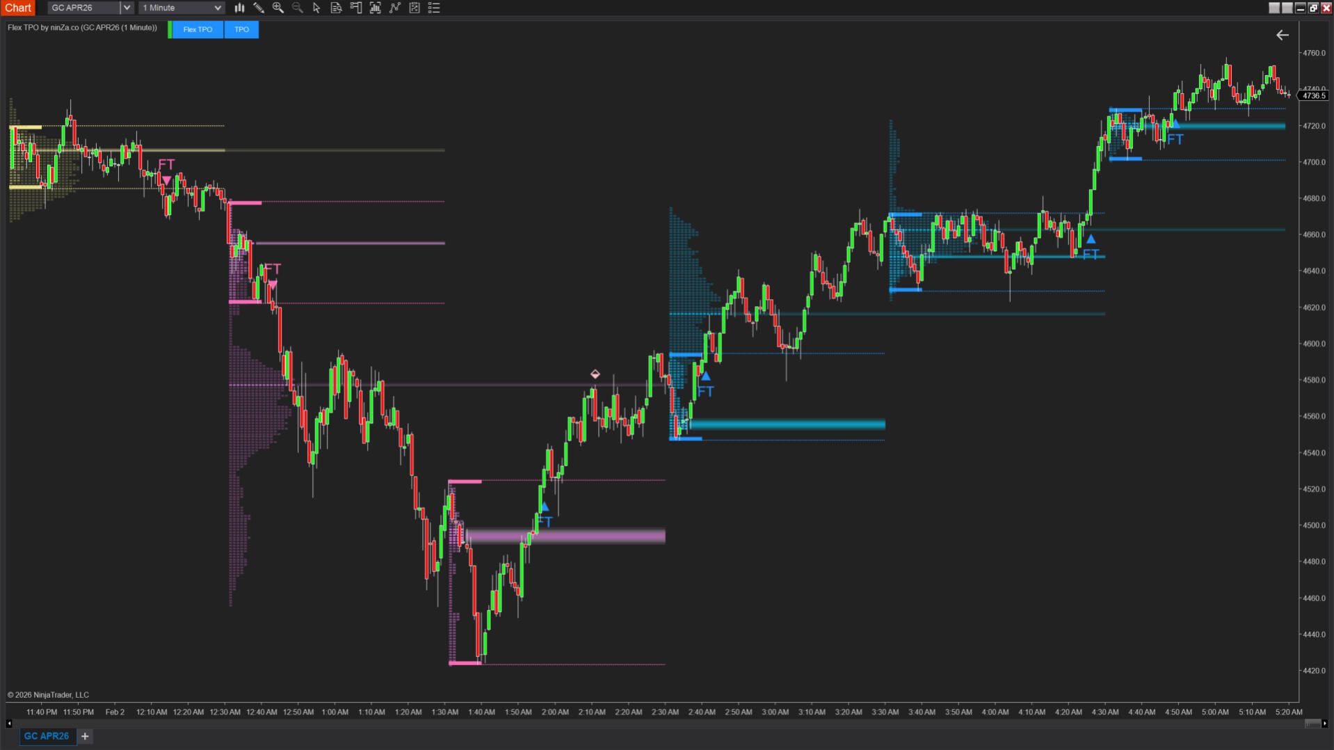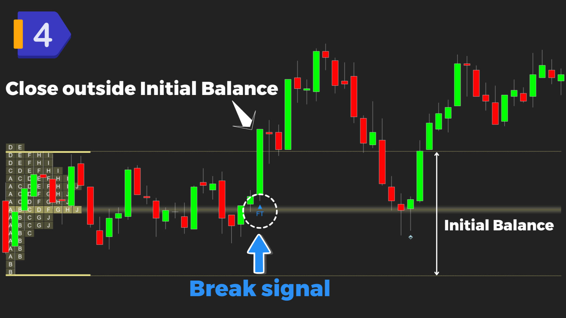 Flex TPO combines Initial Balance and TPO/Market Profile to give you crystal-clear references on when to trade and where to act.