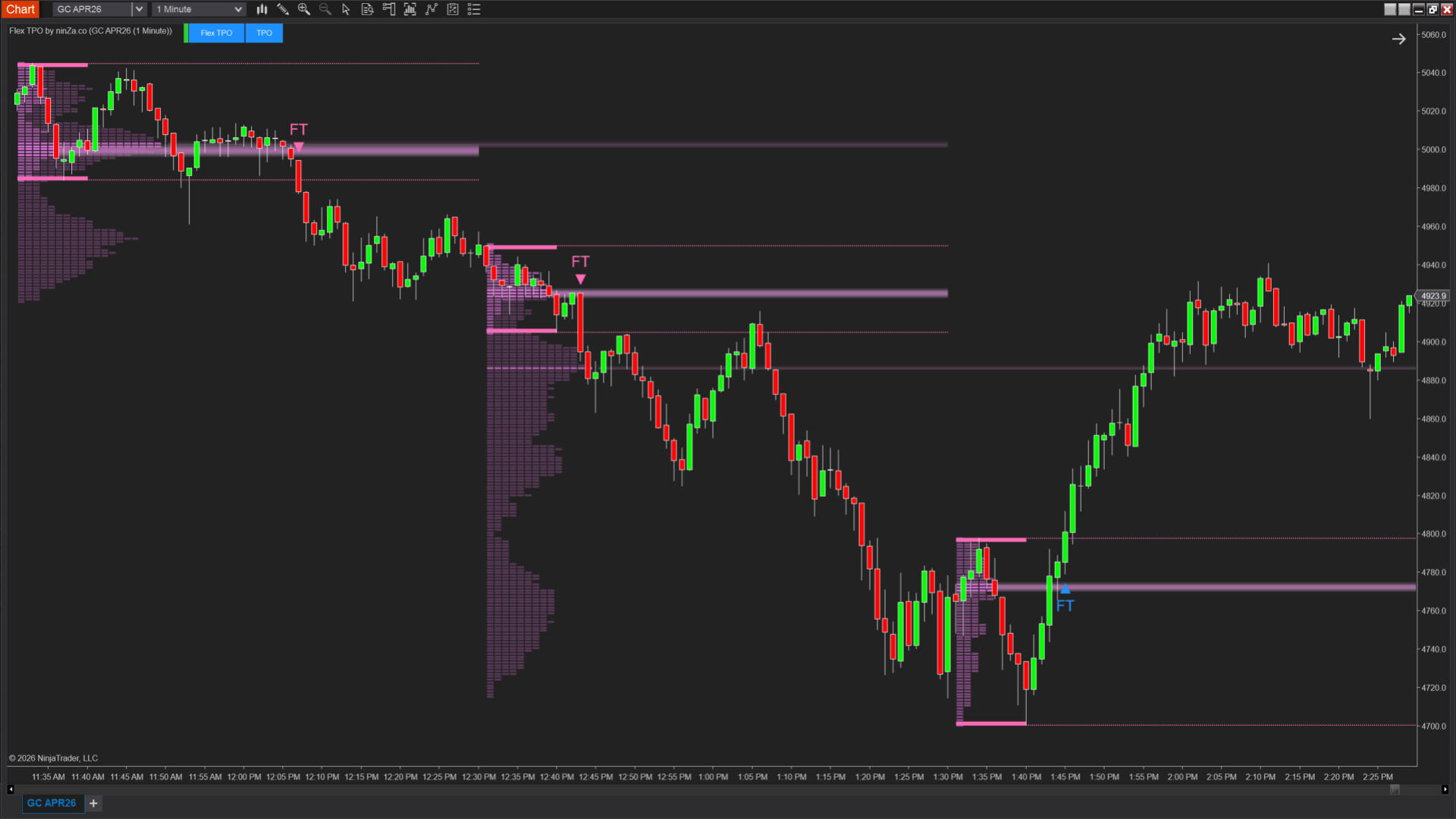 Check out the 30-day backtest results of Flex TPO on GC 1-min chart: