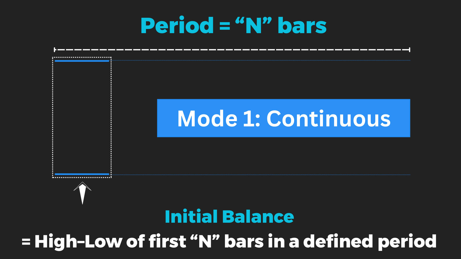 In this mode, Initial Balance is defined by the High–Low range of the first N bars of the session.It is designed for traders who prefer a simple, session-based structure.Why it works: