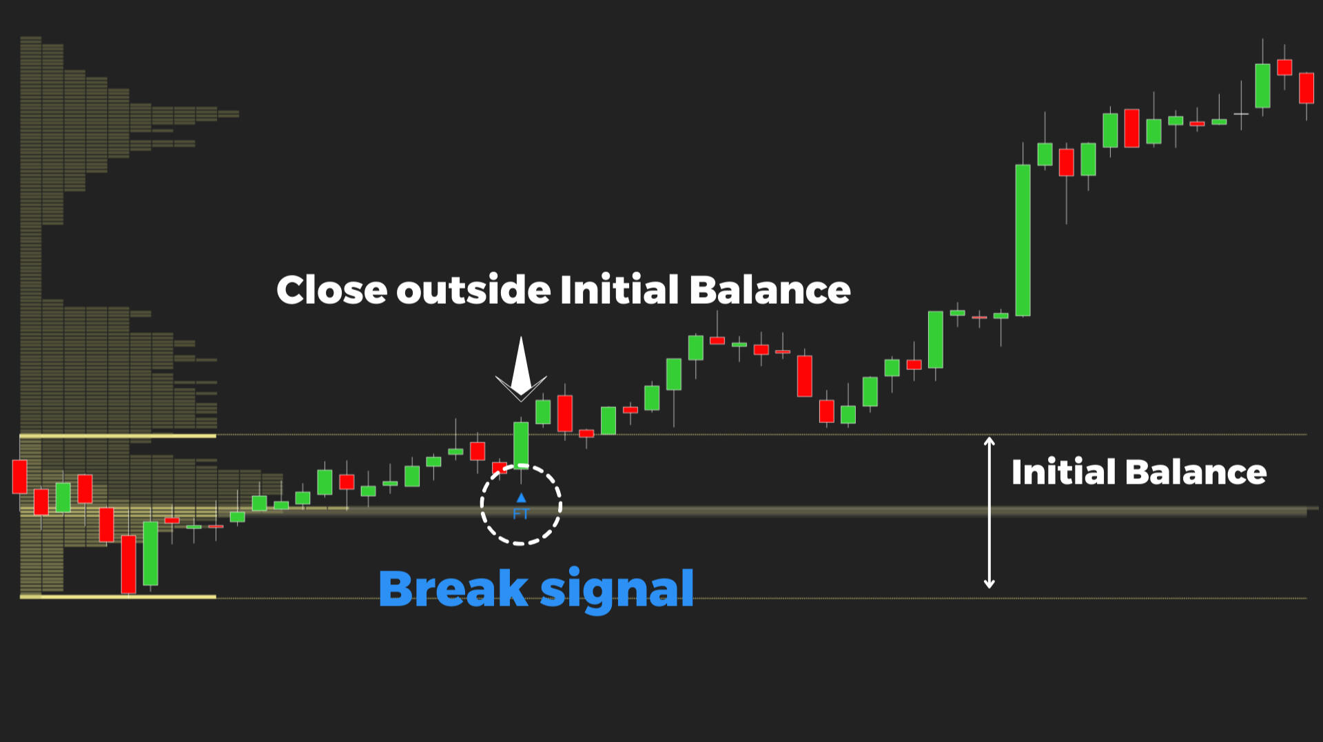 Triggered only when a candle closes outside the Initial Balance.