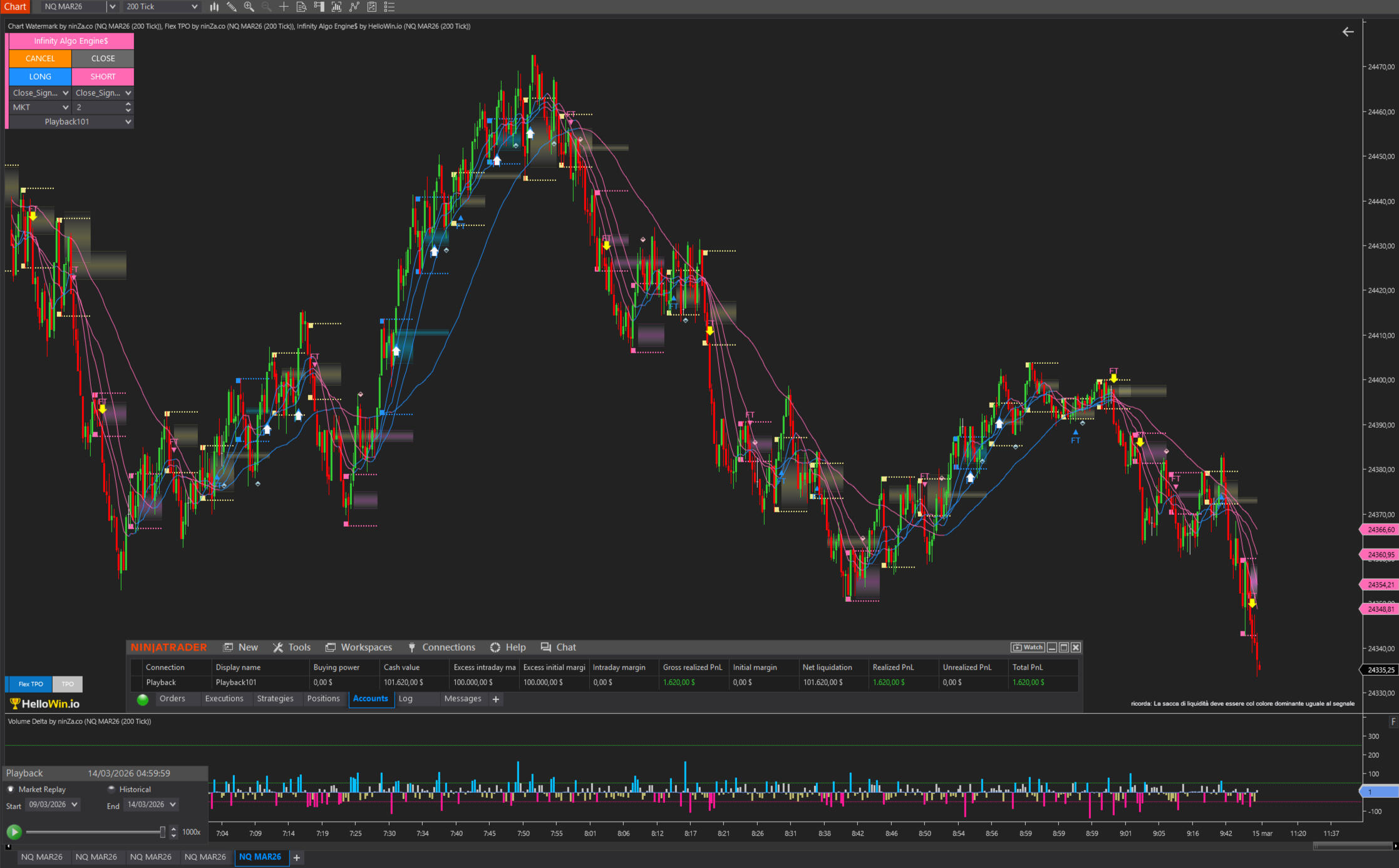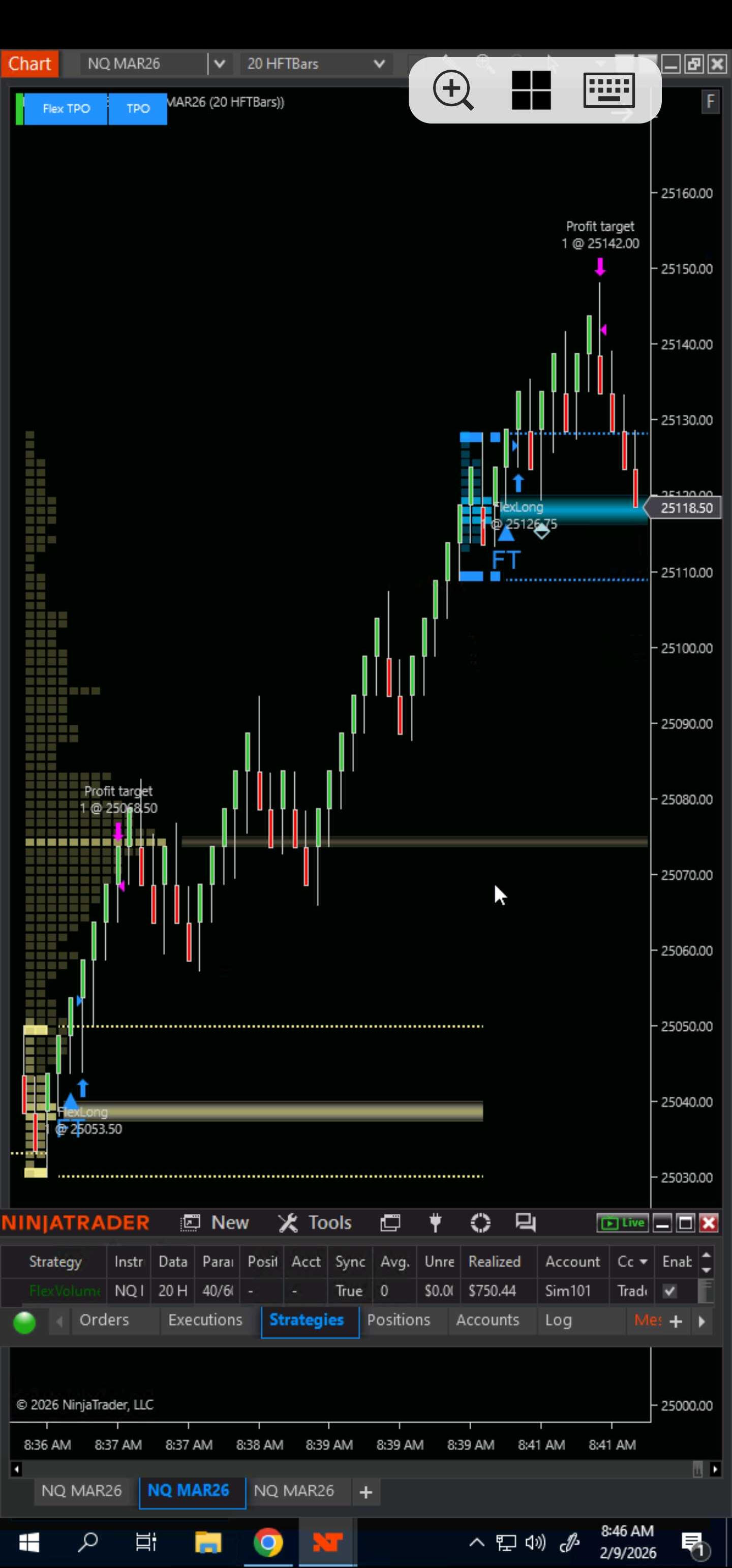 Watch the backtest results of Flex TPO on NQ 1-min chart for 30 days: